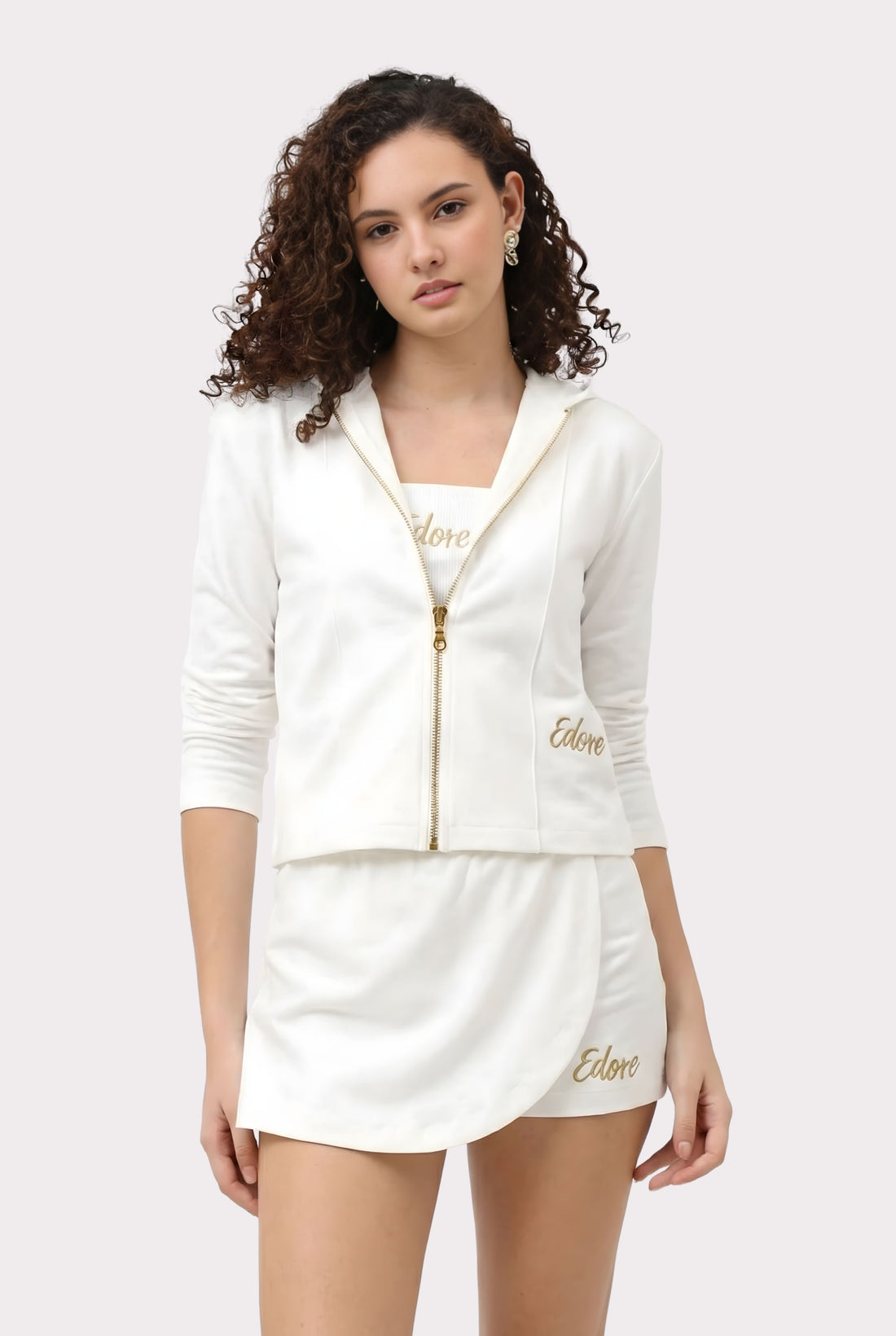 Kyne White Front Zip Crop Jacket (Without Pocket)