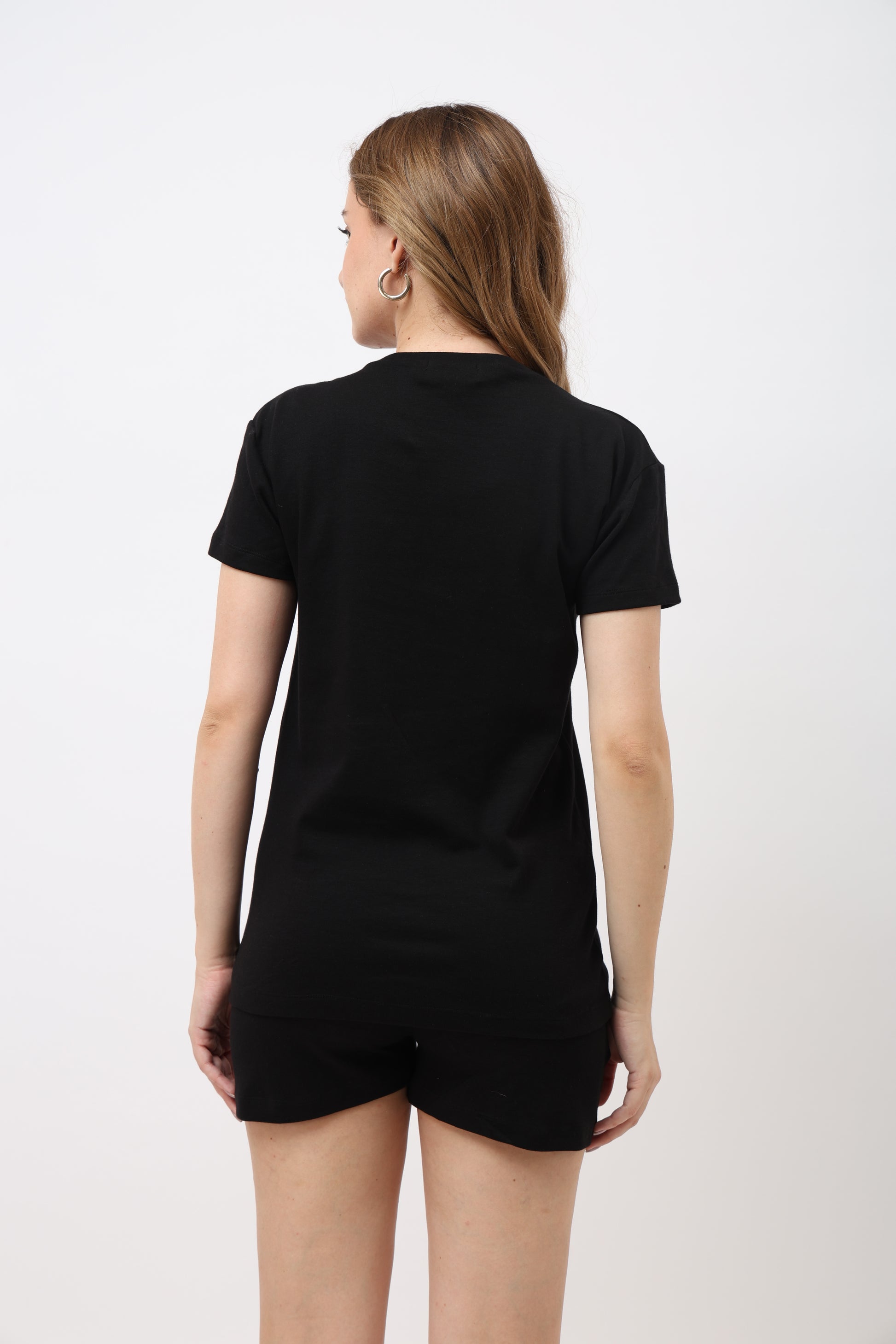 Eleno Black V-Notch Neck T-Shirt