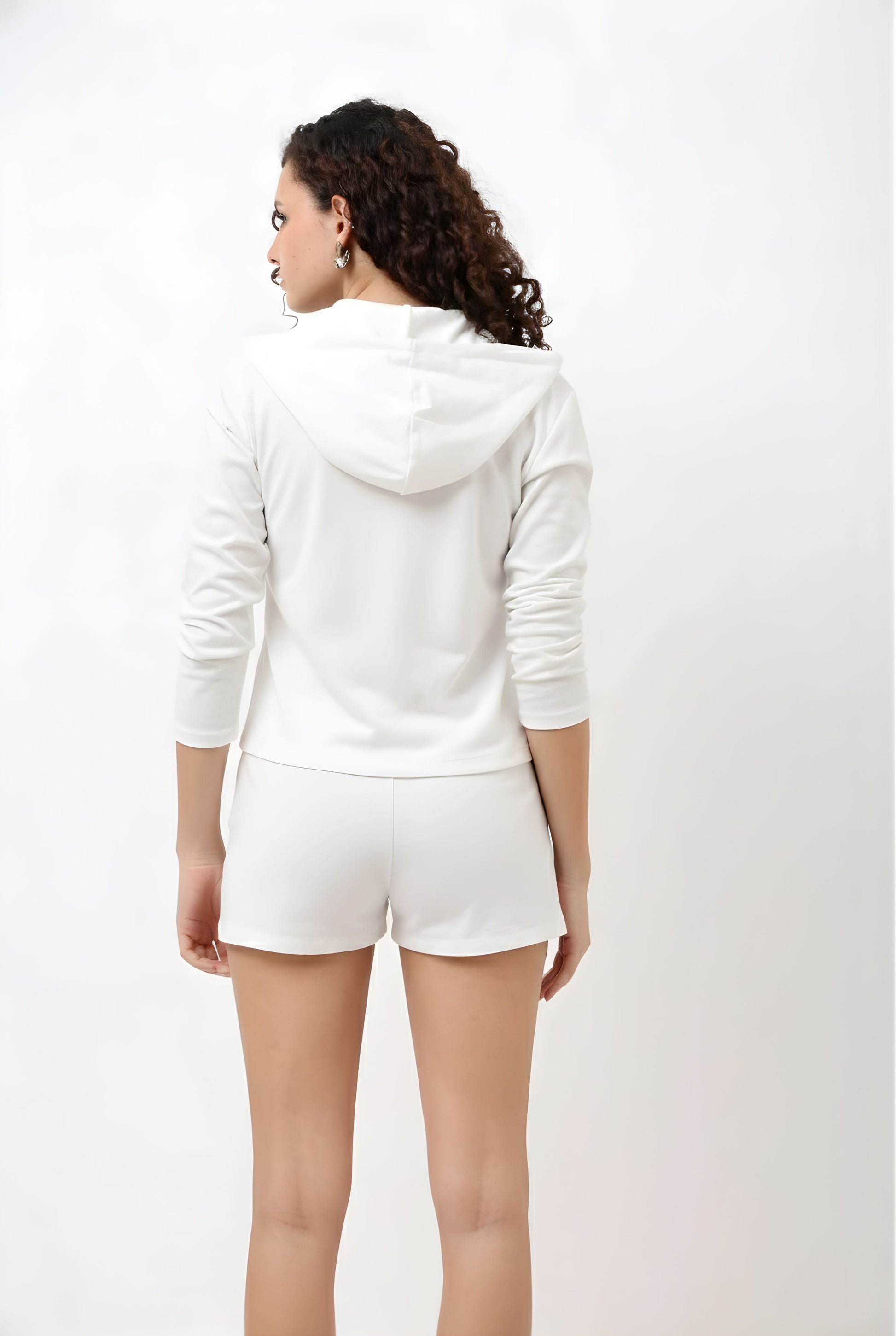 Kyne White Front Zip Crop Jacket (Without Pocket)