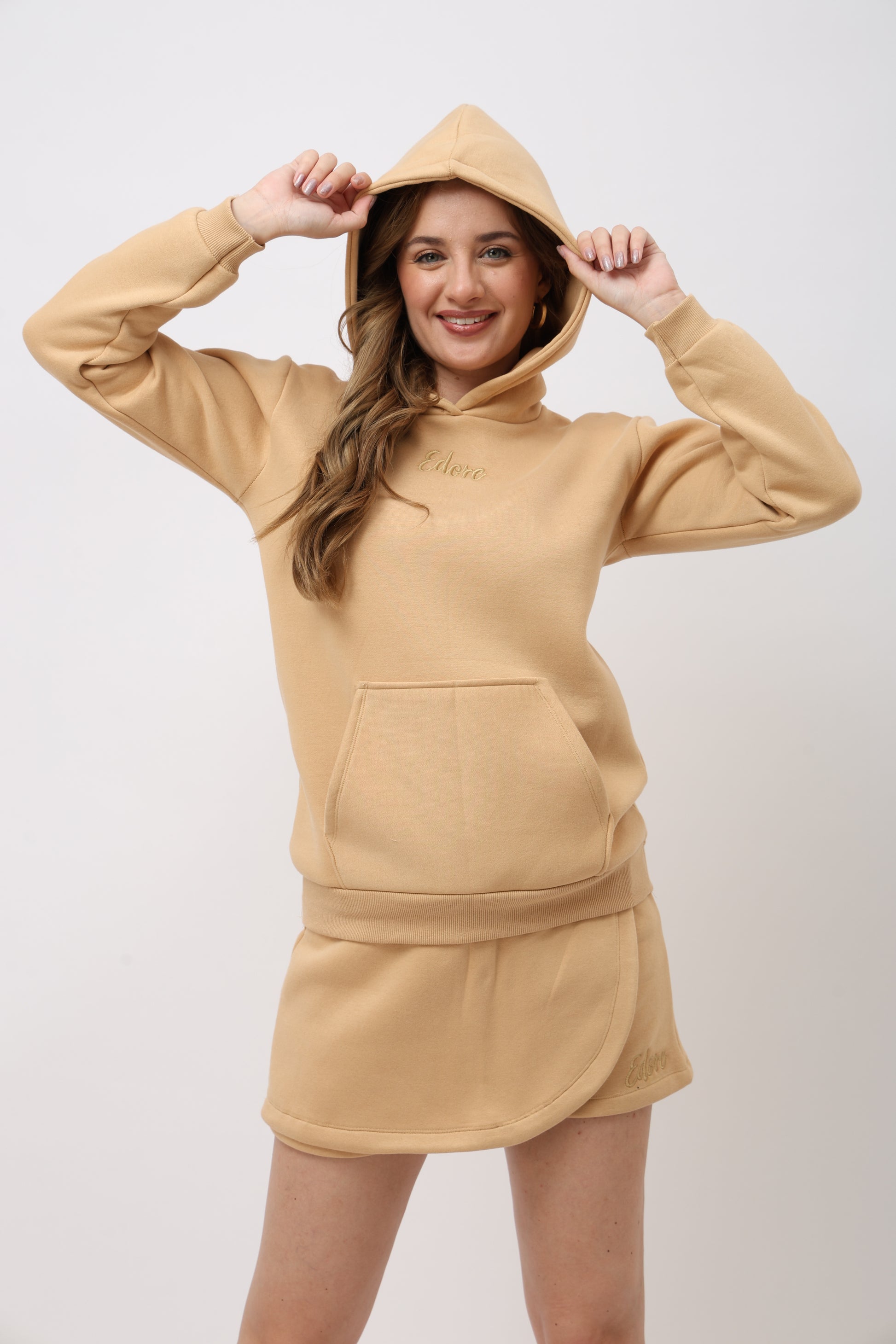 Effortlessly blending comfort and sophistication, the Lira Beige Co-ord Set captures Edore’s essence of quiet luxury. Crafted from premium fleece cotton, this coordinated look features a soft hoodie and a modern skort — designed to move with ease while maintaining a structured silhouette.