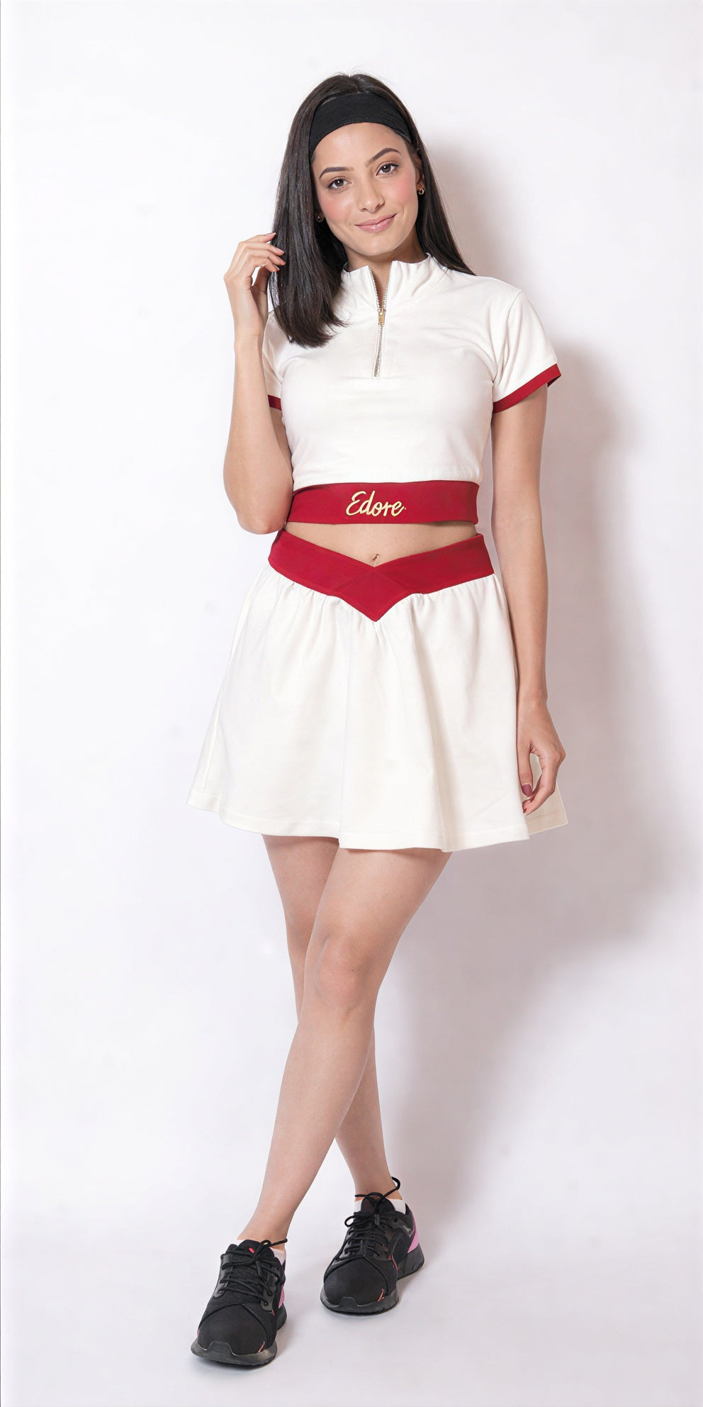 Part of the Dorée Collection, the Clémence Zip Crop Top brings together sport-inspired structure with refined detailing. The high-neck silhouette with a sleek front zip creates a sharp, modern look while maintaining a flattering cropped fit.